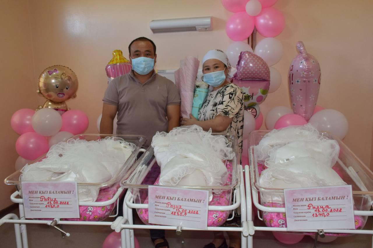 28 жастағы Қымбат Сарыбайқызы Раяна, Рәзия және Рәбия есімді үшемді дүниеге әкеліп, алты баланың анасы атанды. Бүгін анасының және сәбилердің жағдайы жақсарып, облыстық перинаталды орталықтан шығарылды.