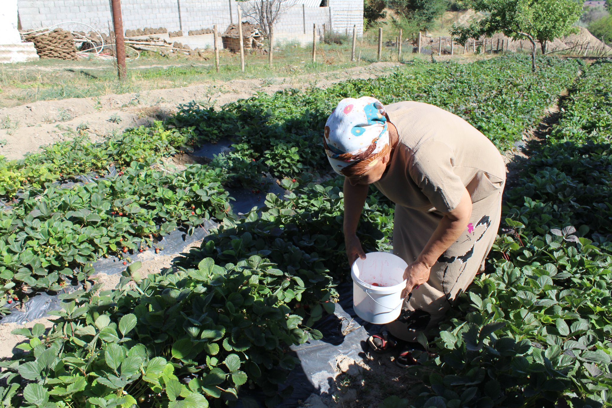 Жерін алдын ала құнартып, көшеттері отырғызылғаннан кейін күннің ыстығынан және зиянкестерден қорғайтын, жақсы өсімін беретін қара түсті агрофибрмен жабылған. Жеріне тамшылатып суару әдісін қолданады. Үй жағдайында 10 шақты бас құс өсіреді, құстың саңғырығын тыңайтқыш етіп, өзі дайындап, жерге пайдаланады.