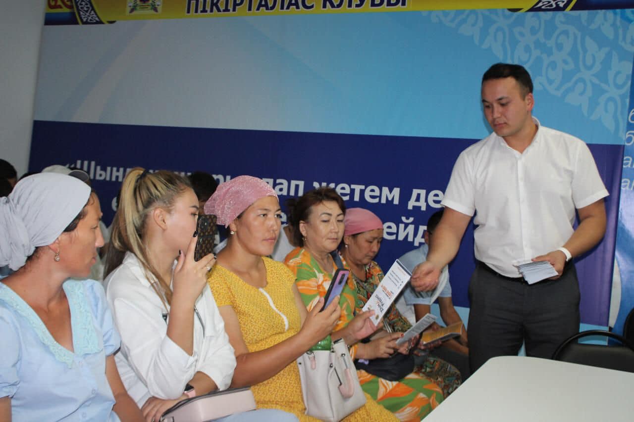 Түркістан облыстық қоғамдық даму басқармасының «Жастар ресурстық орталығы» КММ-і басшысы Ерасыл Әшірбайұлы және «Zhas Project» Түркістан облыстық жобалық кеңсесінің консультанттары Нұрғазы Оразәліұлы, Ерасыл Көшербаев аудан, қала жастарымен кездесу өткізуде. Кездесу барысында әлеуметтік жобаларды жүзеге асыруға 1 млн. теңгеге дейін гранттар берілетіні, оны алу жолы түсіндіріліп жатыр.